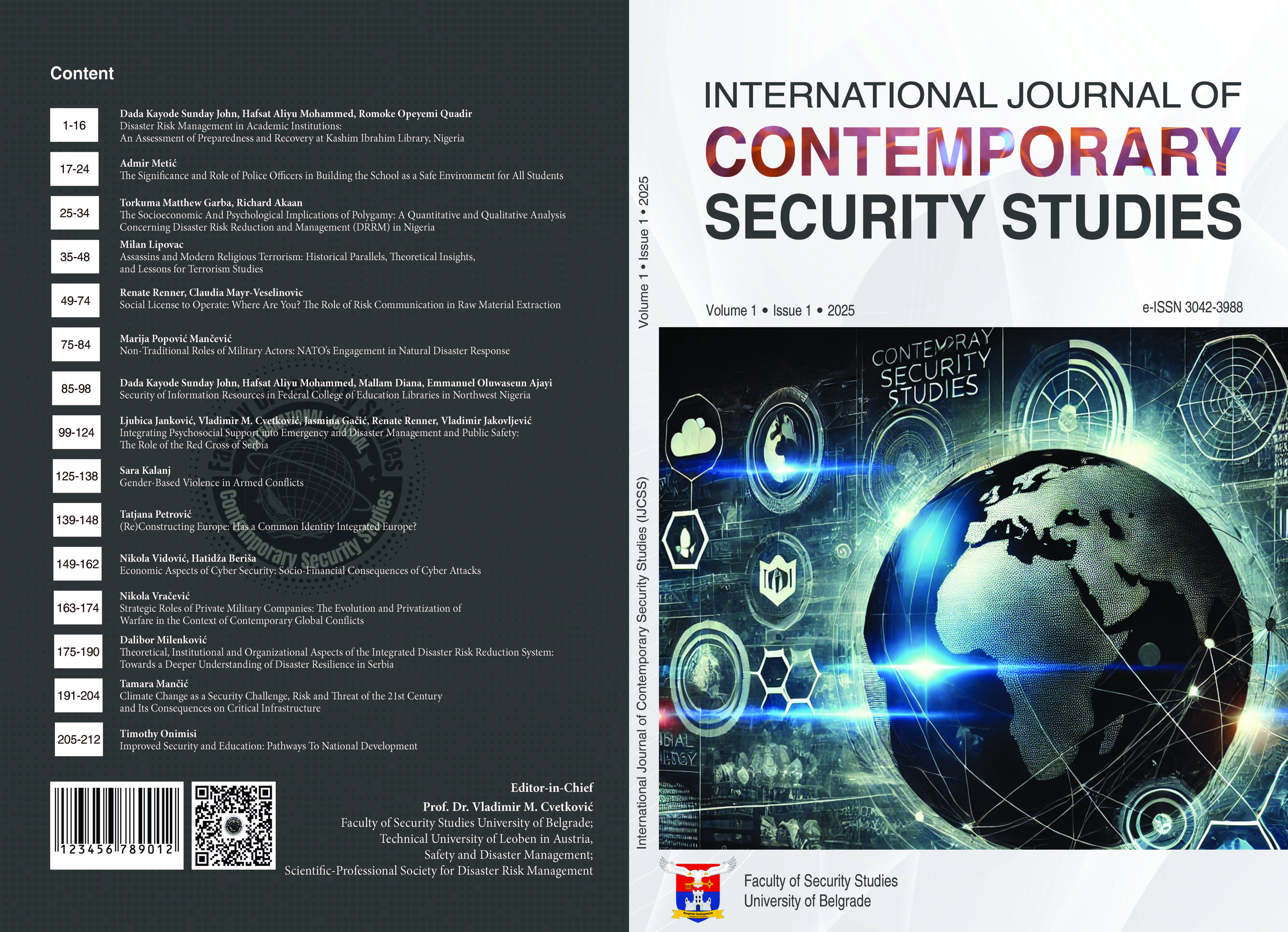 - Authors retain the copyright to their submitted work. However, by submitting their manuscript, authors grant the International Journal of Contemporary Security Studies a non-exclusive right to publish, distribute, and archive the work in any format (print, digital, or electronic).